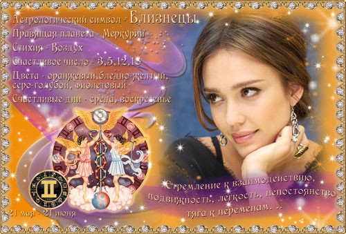 Людям, родившимся с 21 мая по 22 июня, звезды подарили артистичность, любознательность, упорство и хорошие интеллектуальные способности. Это одаренные натуры, способные принимать не только обдуманные решения, но и интуитивные. «Шестое чувство» их никогда не подводит, а уверенность в собственной правоте и умение заглядывать в будущее обеспечивают им успех и процветание.