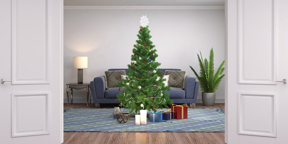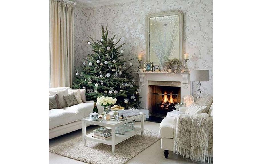 На диваны и кресла положите мягкие игрушки и подушки из пряжи и других натуральных материалов. На стол или камин поставьте декоративную елочку из блестящих серебристых дождиков. Не забудьте о деталях — расставьте по всему помещению небольшие вазочки, сувениры и фигурки.
