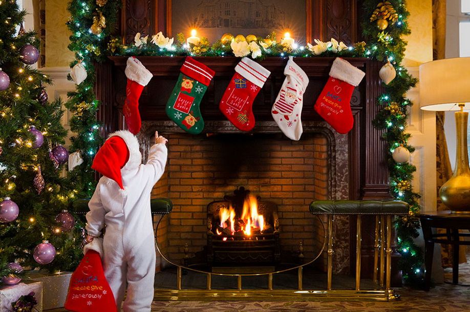 Один из главных рождественских символов — уютный камин. По давней традиции, на его полочках развешивают носочки и корзиночки для подарков.