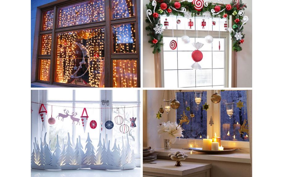 Окна занимают большую площадь в помещении, поэтому их можно использовать для декоративного оформления интерьера. Лучше всего украсить их в общем тематическом стиле: повесить небольшие гирлянды из снежинок или наклеить их прямо на стекло.
