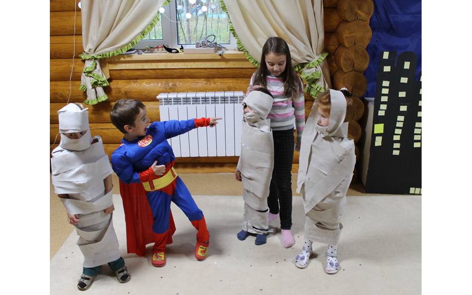Мумия. Один из участников берет на себя роль мумии, второй – “мумификатора”. Если гостей много, “мумификаторов” может быть целая команда. Задача мумии – стоять неподвижно, задача команды – обернуть его снизу вверх рулоном туалетной бумаги, оставив нетронутыми только глаза, нос и рот. Оборачивать придется медленно, поскольку бумага быстро рвется. Побеждает тот участник (команда), которому удастся создать первую мумию, не порвав при этом бумагу. Можно продолжить конкурс и предложить участникам как можно быстрее свернуть бумагу обратно в рулон.