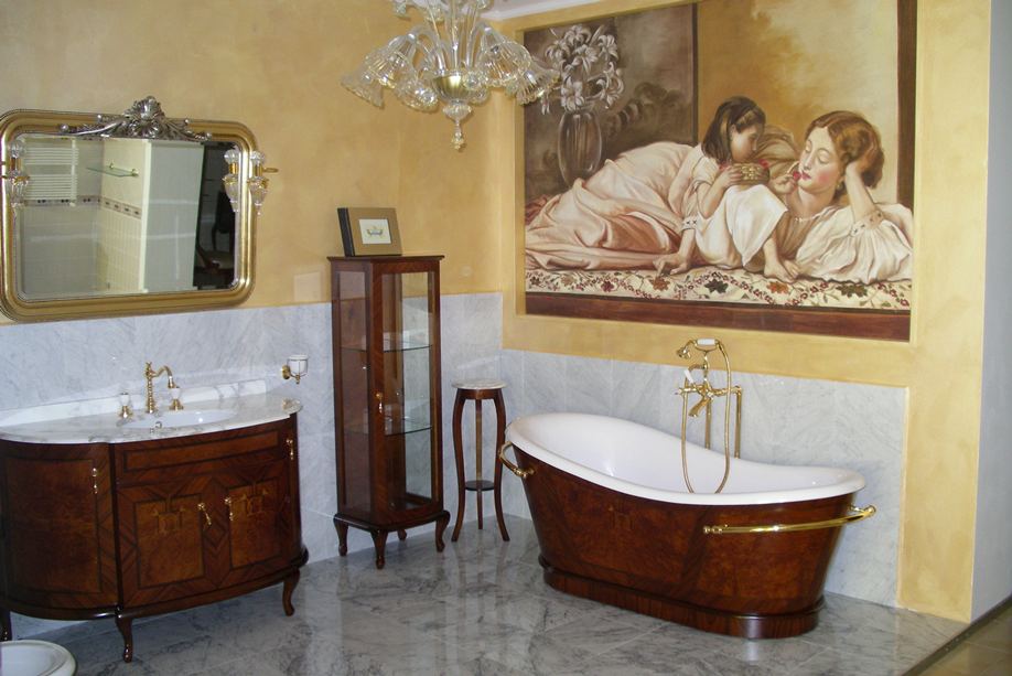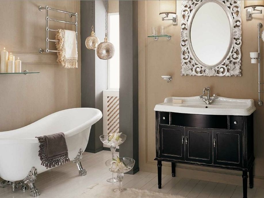 Ретро. Налет нежности и уюта создает ванная комната, оформленная под старину. Состаренные вещи, оформление стен в стиле прованс, ванна на резных ножках, винтажные краны и вентили, отделка кракелюр – все должно напоминать о приверженности хозяев к ретро-тематике.