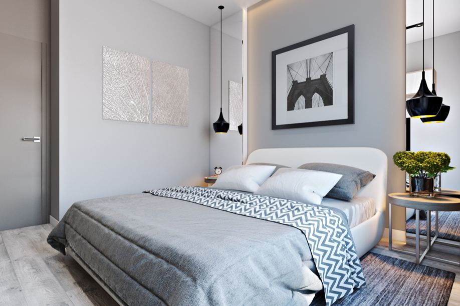 Цвета. Современный интерьер спальни можно построить на ярких или более приглушенных оттенках. Самым востребованным будет сочетание коричневого и бежевого, черного и белого, нежно-голубого и серого. Актуальные яркие цвета – фиолетовый, розовый, бордовый, синий, бирюзовый.