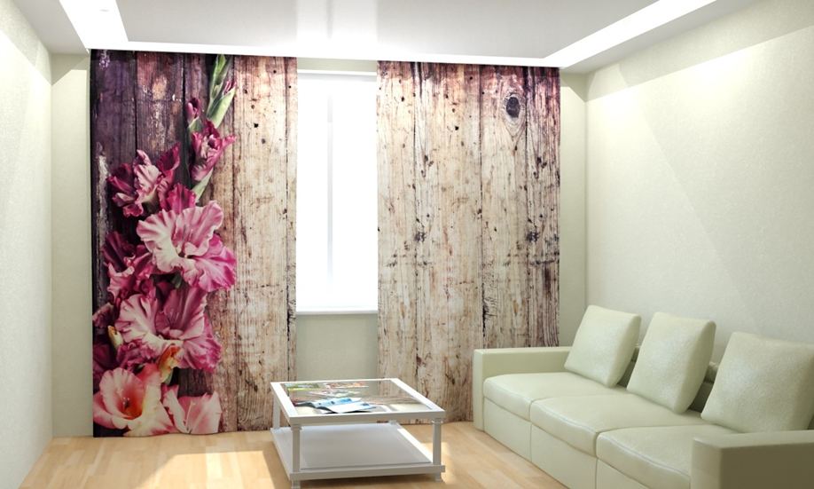 - 3D-шторы – помогут создать яркий акцент в гостиной, а при условии правильного ухода способны прослужить несколько лет. В зависимости от общего стиля интерьера можно подобрать приглушенные или более выразительные оттенки с абстракцией, орнаментами, пейзажами и натюрмортами.