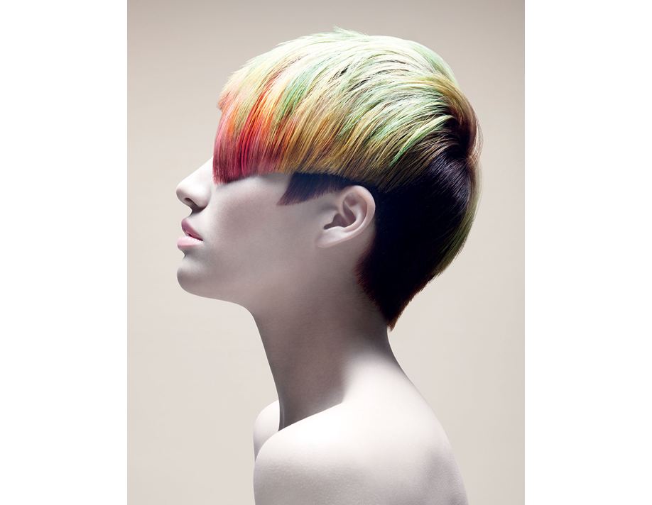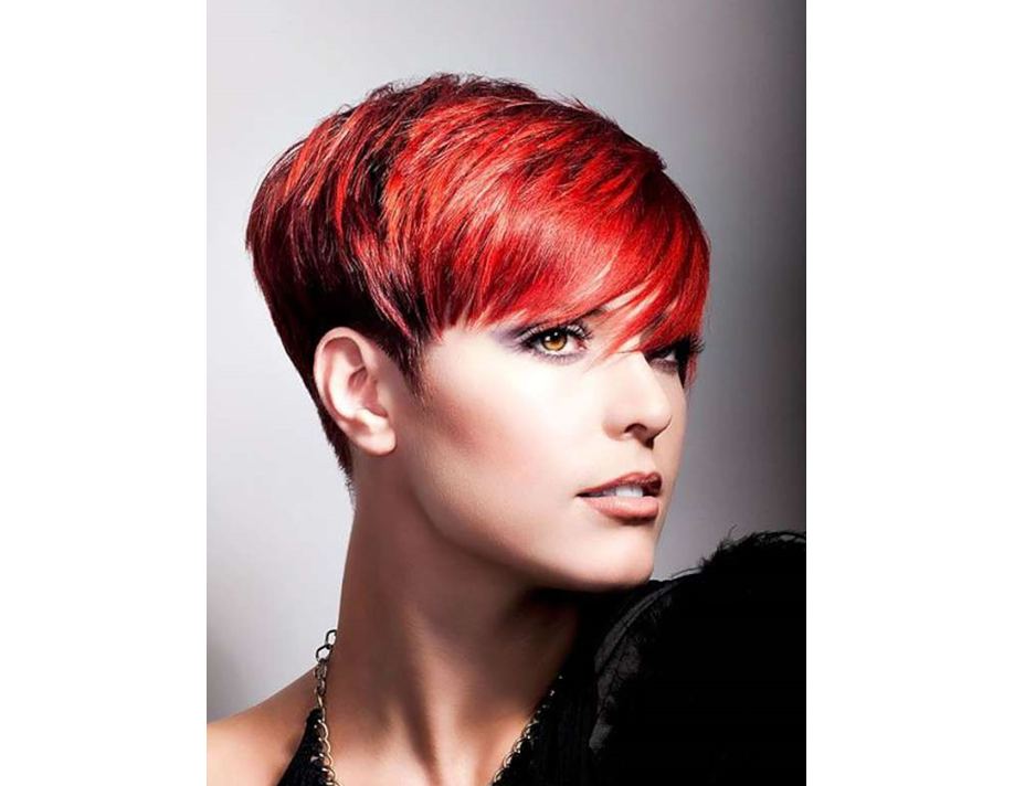 Пикси как нельзя лучше подходит для реализации техник контрастного окрашивания. При помощи прядей, тонированных в яркие оттенки, стилисты создают акценты на определенных зонах прически и выполняют трафаретное окрашивание.