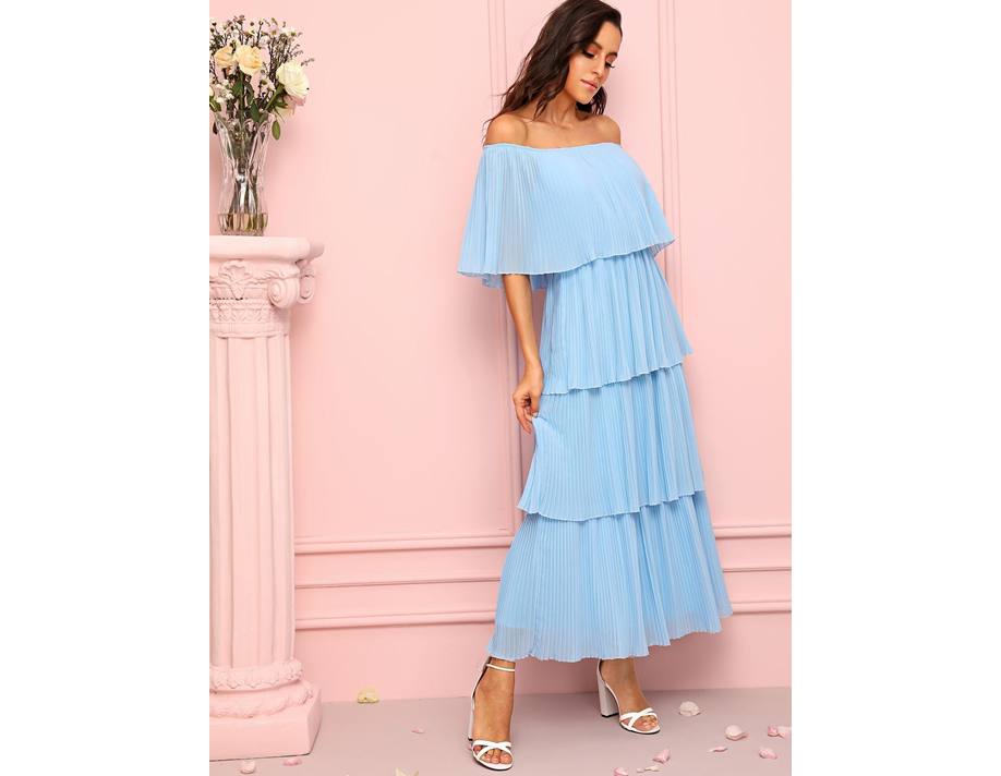 В платье такого типа плиссированной может быть только юбка либо сразу все изделие. Стильно смотрятся модели, перехваченные на талии пояском или тонкой цепочкой. В элегантных плиссе будет не стыдно показаться на торжественном мероприятии, свадьбе или выпускном вечере. Популярными обещают стать однотонные ткани в пастельных, небесно-голубых и зеленых оттенках.