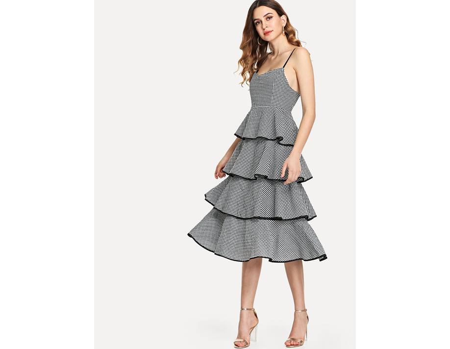 Мода на многослойные фасоны отчетливо наметилась еще в 2017 году, и до сих пор платья сложного кроя входят в список фаворитов. Они выглядят очень эффектно, но самое главное – отлично подходят для коррекции фигуры худышек. Воланы, ярусы и складки можно смело использовать там, где не хватает объема – на груди либо бедрах. Воланы, расположенные чуть ниже бедра, уравновесят широкоплечую фигуру, а многослойная юбка добавит формам аппетитности.