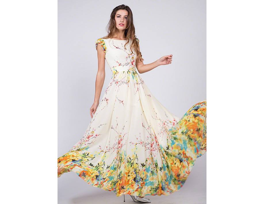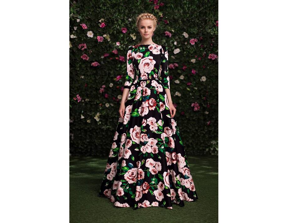 Если речь идет о вечернем наряде, есть смысл присмотреться к цветным платьям в пол. Но в этом случае рисунок должен быть более сдержанным. Идеально, если принтом будет отделан только низ шикарного пышного подола.