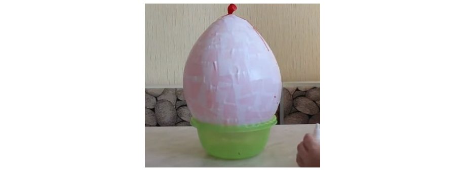 • Дав заготовке хорошенько высохнуть, развязываем шар и, выпустив из него воздух, осторожно достаем его из яйца.