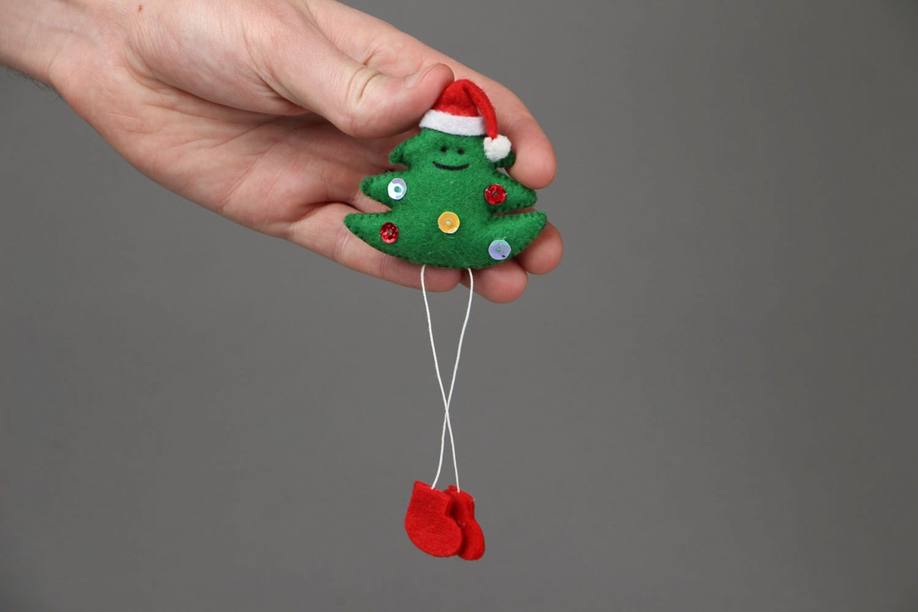 Самым удобным материалом для новогодних магнитов является фетр, легко поддающийся и кройке, и ручному шитью, а также не нуждающийся в обработке срезов: они никогда не осыпаются.