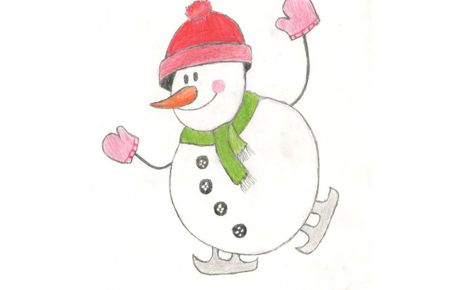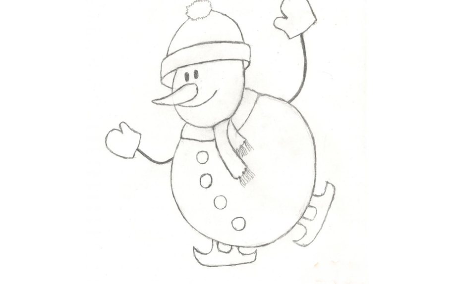 Какой же Новый год без жизнерадостного снеговика?! Пусть ваш малыш попробует нарисовать не просто снежную бабу, а снеговика, катающегося на коньках, – получится мило и забавно.