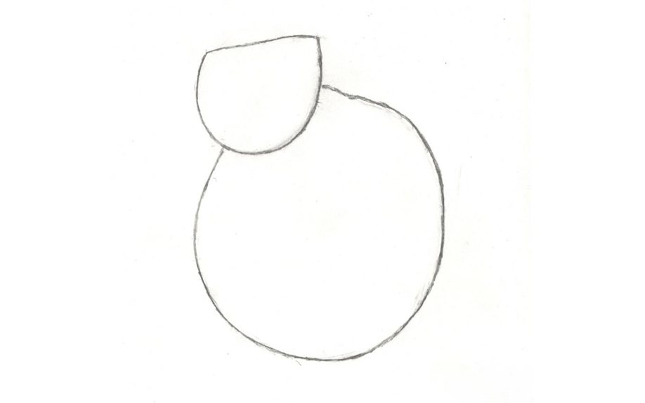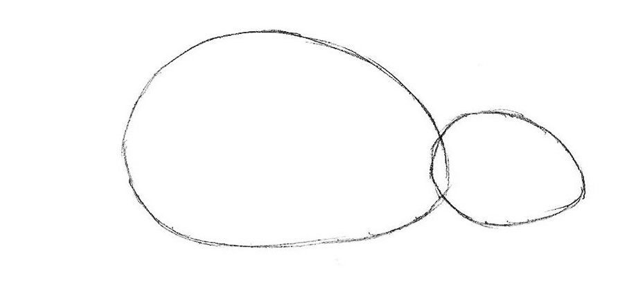 1. Нарисуйте два овала – большой станет мышиным туловищем, маленький – головой.