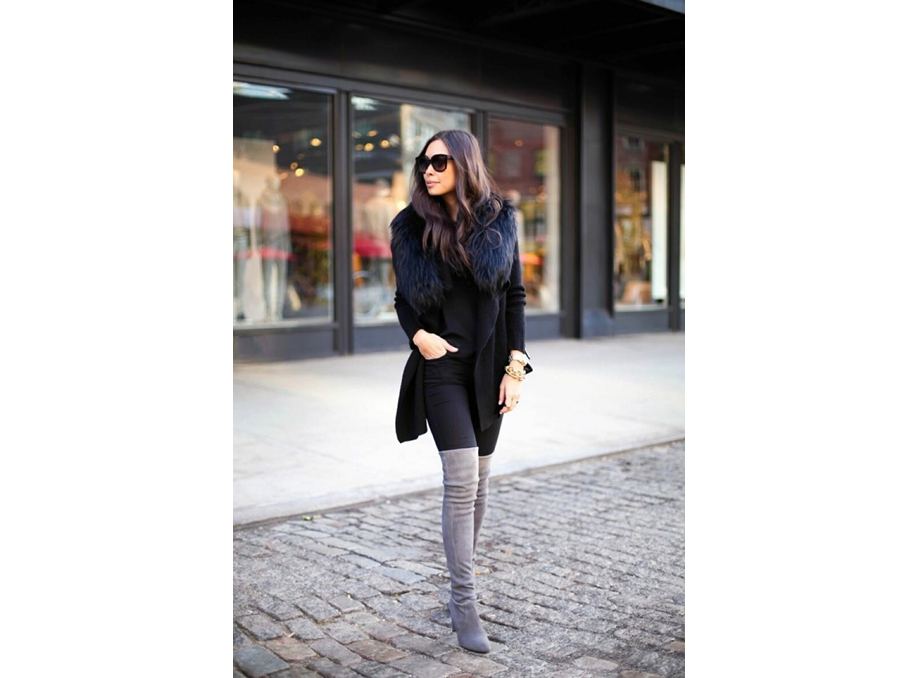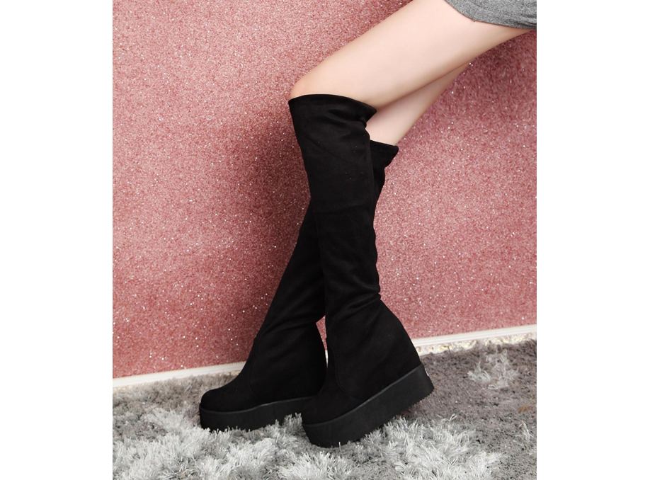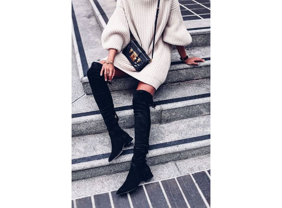 Эффектнее всего смотрятся модели из замши – это идеальная пара даже для самого торжественного события. Их надевают с коротким платьями, длинными свитерами, туниками и шортами.