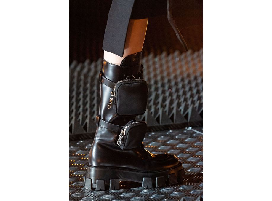 Модная женская обувь 2019-2020 представлена множеством маскулинных моделей – на подиумах вновь властвуют грубые фасоны, создающие впечатление “топорной” работы. Это преимущественно осенние ботинки и берцы с грубой тракторной подошвой, молниями и заклепками.