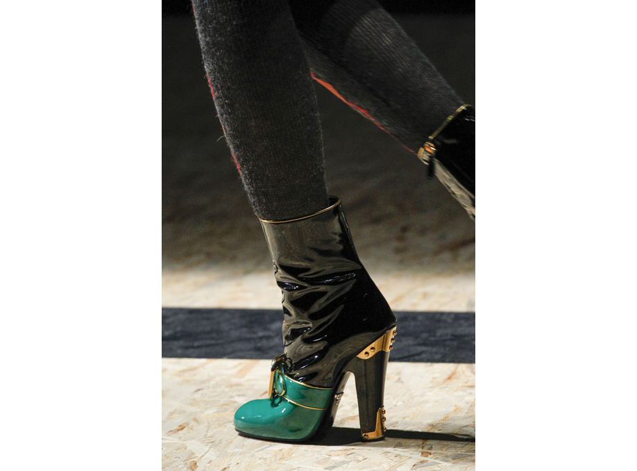 Подчеркнуть геометрию обуви помогают контрастные вставки и комбинированные фактуры. К примеру, интересный акцент на пятке создает металлизированная золотистая окантовка. А для выделения каблука подойдут прозрачные вставки, элементы из ткани, замши, лака и меха.