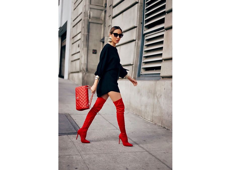 Сапоги-ботфорты как нельзя лучше подходят для создания элегантных женских сетов для холодного времени года. Удлиненные модели чуть выше колена отлично сочетаются с короткими платьями любого кроя – как с приталенными коктейльными, так и свободными А-силуэта. Последний вариант позволяет отвлечь внимание от лишних сантиметров на талии и бедрах и сделать акцент на стройных ножках.