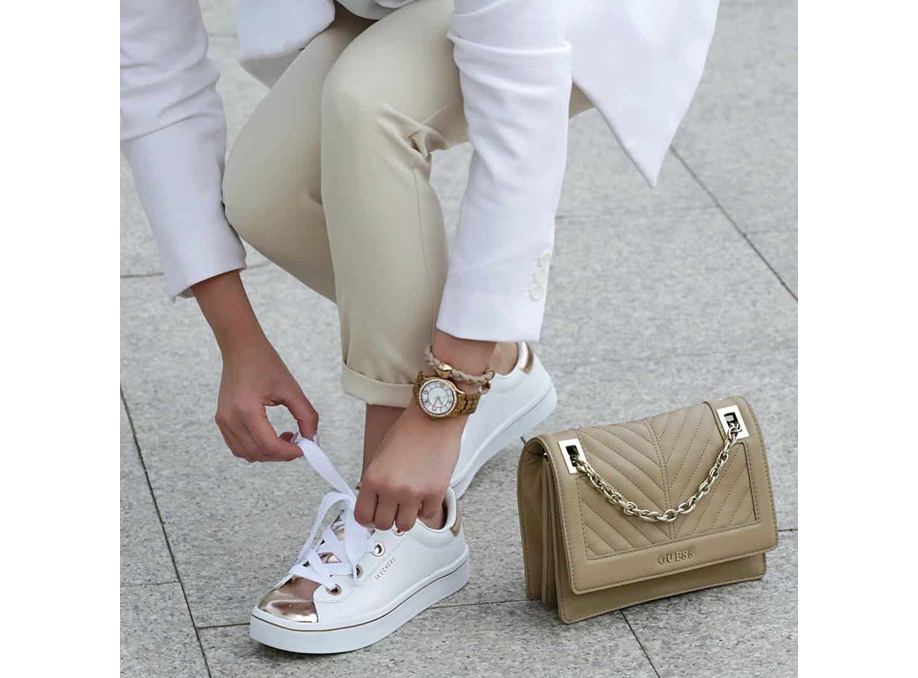 - Спорт-шик – это эклектичные модели обуви, в которых соединены сразу несколько стилей, во главе угла всегда стоит удобство, но без утраты женственности.